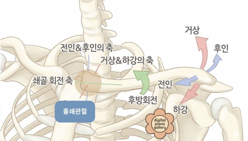 • 팔의 시작점을 겉으로 보이는 어깨가 아니라 흉쇄관절(흉골과 쇄골이 만나는 지점)에서 시작한다고 인지하고 쓰기